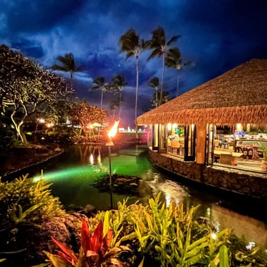 Located at the Grand Hyatt Kauai Resort and Spa, TidePools is a beautiful restaurant with a very romantic open-air setting. It is known for the beautiful and romantic ambiance, appetizing food, and exceptional service. Tidepools has a waterfalls backdrop with thatched-roof bungalows that seem to float above lagoons that are filled with koi!