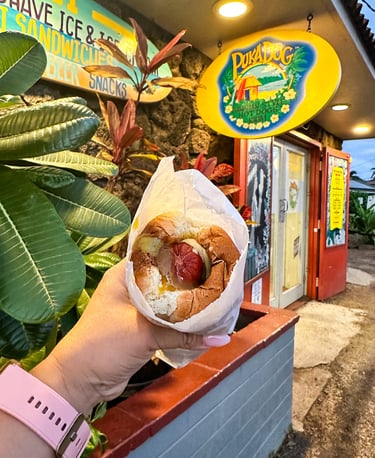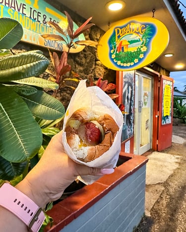My favorite snack in all of Kauai! I know I have a lot of favorites, haha, but this is really one of my favorites! It’s a bit pricey for a hot dog, but I promise it does not disappoint!