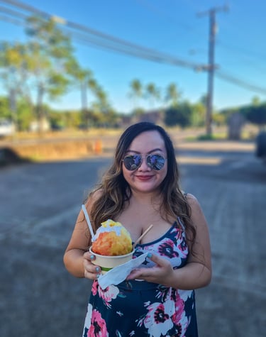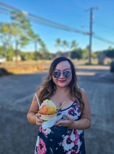 Basically, these places that I love, they use all natural (not dyed) sugar and flavors. Waikomo Shave Ice comes with topping, including honey, coconut cream, and fruit! My favorite flavors are guava, pineapple, and lilikoi!