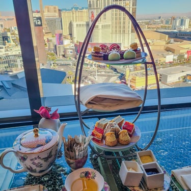 On the lovely 23rd floor of the Waldorf Astoria, is Tea Lounge. It is a beautiful area for English afternoon tea. The beauty of this place is, you have a gorgeous backdrop of the Las Vegas Strip views while sipping on a warm cup of tea!