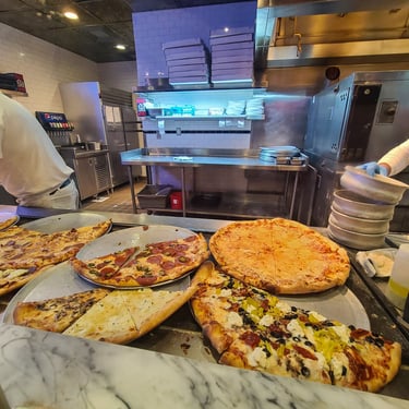 Pizzas were huge, and came heated with delicious golden crust and soft center. You can get it by the slice or whole.