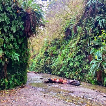 This hike through fern canyon involves walking through steams so if you don’t want to get wet feet the whole trip, consider waterproof shoes or sandals. Sometimes some spots will have water levels as high as the knees.