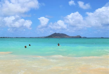 Lanikai beach, located in Kailua, is a picturesque beach with white sand and turquoise water. It is well known for its calm, shallow, and stunning views of the Mokulua Islands. People come here to swim, snorkel, and kayak. However, due to its location, it is a great spot for watching sunrise.