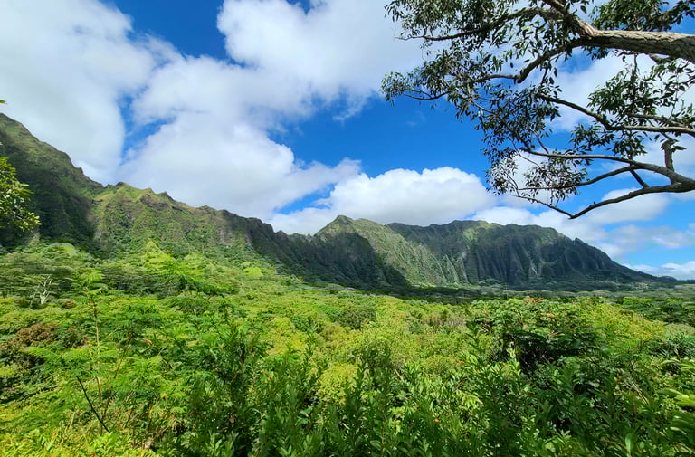 The Kuliʻouʻou Ridge Trail winds through diverse habitats and native plants as it climbs along the ridge.