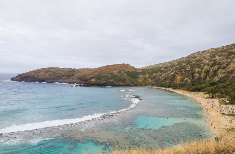 Hanauma Bay is a protected marine sanctuary and top snorkeling spot, with stunning views from afar.