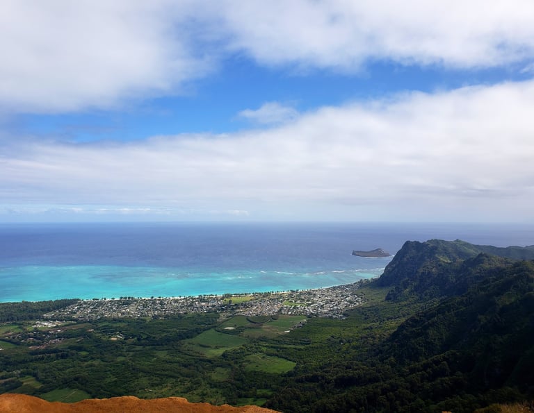 The Lanikai Pillbox Trail follows the Ka’iwa Ridge, offering breathtaking panoramic views of Lanikai and Kailua. While the hike is relatively short, some sections are steep and slippery, requiring scrambling and light rock climbing. Fortunately, ropes at the start help with the more challenging parts.