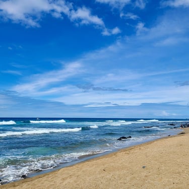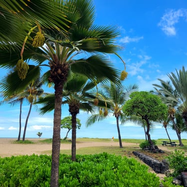 Once you arrive, you’ll see that this beach is lined with coconut palms, which truly gives you that island feel. You may even be greeted by a nene or two (Hawaiian goose), like we did last time haha!