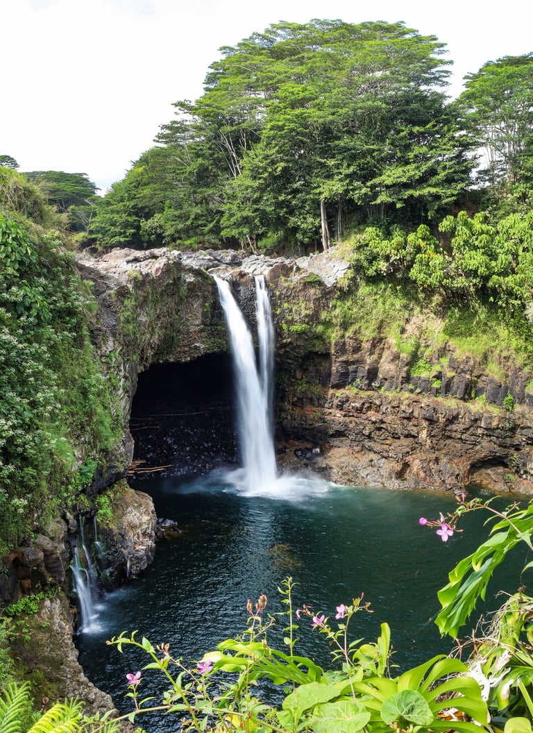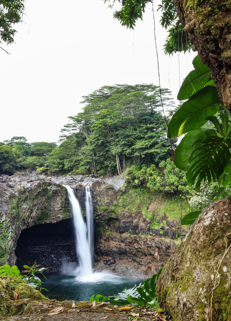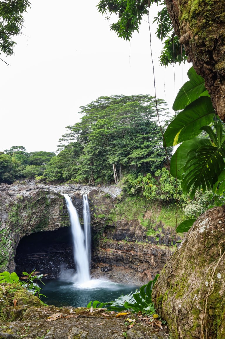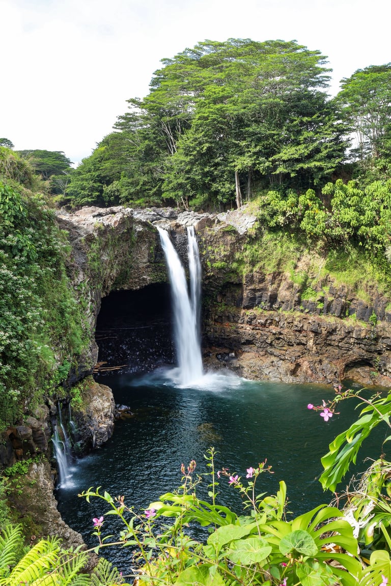 Within Hilo is the famous Rainbow Falls. It’s surrounded by lush foliage.