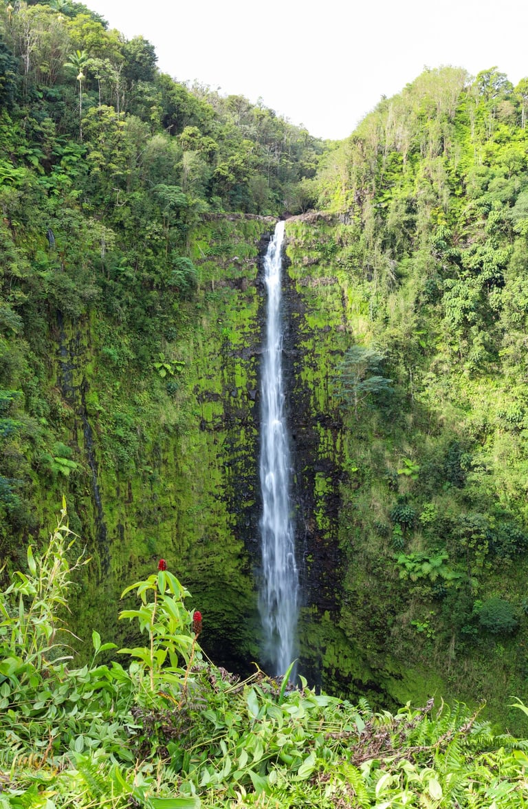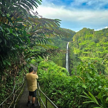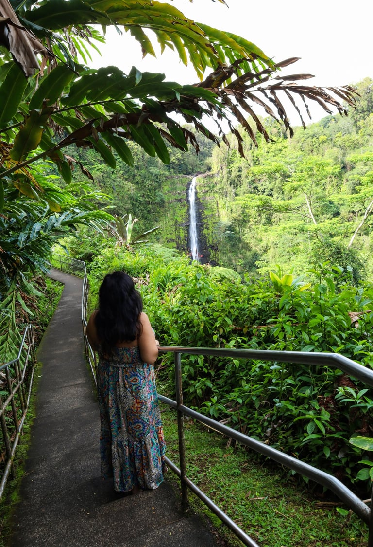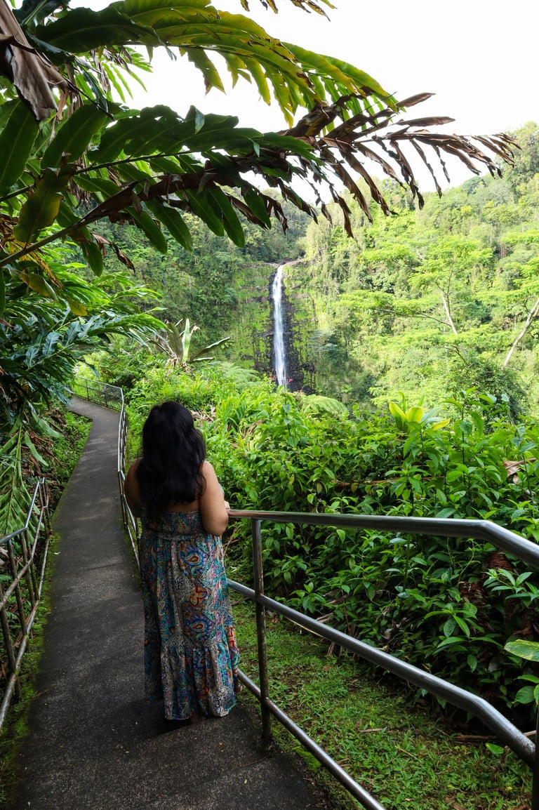 Within Hilo is the famous Rainbow Falls. It’s surrounded by lush foliage.