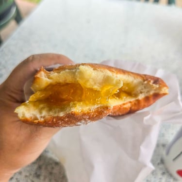 It’s a great little stop for a quick lunch or sweet treat. There’s a cute garden area with greenery and a fish pond where you can sit and relax, plus a gift shop filled with fun finds. We did get some sweet bread to go; we got taro and kalokoa (mango, guava, and taro mixed). However, my favorite was their malasadas!