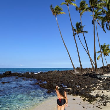 A true rarity on the Big Island, Makalewena Beach is the kind of place you picture when you dream of turquoise waters and powder-soft white sand. It’s breathtakingly beautiful, the kind of beach that makes you pause and wonder if you’re really on the Big Island or somewhere in the Bahamas.