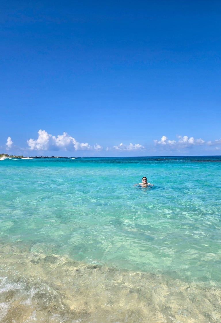 That said, the beauty is undeniable. The water glows a vibrant turquoise against the white sand, creating a scene that feels almost tropical-dreamlike. During our January visit, we were treated to an unforgettable surprise: a pod of dolphins swimming and playing right off the beach. It was absolutely magical.