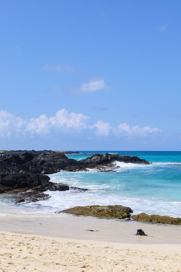 The hike wasn’t particularly strenuous, but it’s an adventure. The trail hugs a cliffside, winds past a beautiful beach lined with swaying palms, cuts across a sharp lava field (good footwear is strongly recommended, although I did it in my crocs slippers), and eventually leads through rolling sand dunes. The heat was intense and the sun unforgiving, but the steady island breeze helped balance it out. For me, the trail itself was manageable, it was the deep sand that proved the toughest part; sand hiking never gets easier for me.