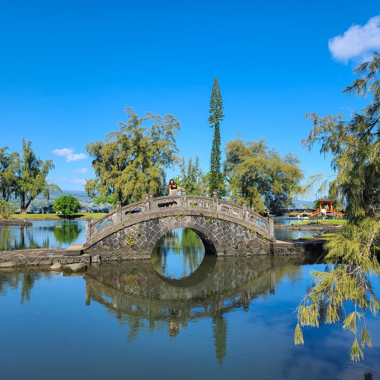 The Liliu’okalani Garden is a beautiful Japanese botanical garden with a variety of native Hawaiian plants and trees, arched bridges, fishponds, pagodas, Japanese stone lanterns, a teahouse, and gorgeous views all around. Liliu'okalani Garden was named after Queen Liliu'okalani who was Hawaii’s last reigning monarch. The garden is located on Banyan Drive in downtown Hilo. There are multiple walking paths, so Liliu’okalani Garden a great place for a lovely stroll if you’re in the area.