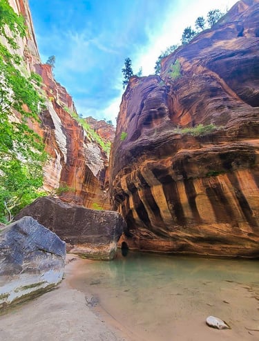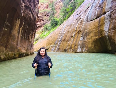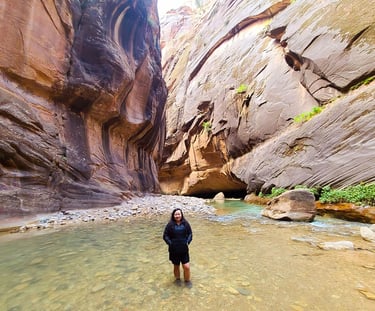 Summer is the best time to hike the Zion Narrows. Although early fall is an option too (and probably lesser crowds). This is when the water is at its warmest and water level isn’t too high. Weather is also nice in the slot canyons.