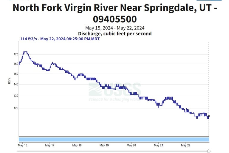 An example of the chart showing the Virgin River flow rate in May of 2024