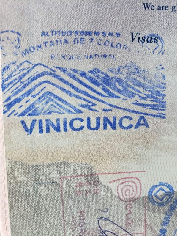 At the summit, a local offered a Rainbow Mountain stamp for just one sol. Naturally, we both got our passports stamped, because, why not?