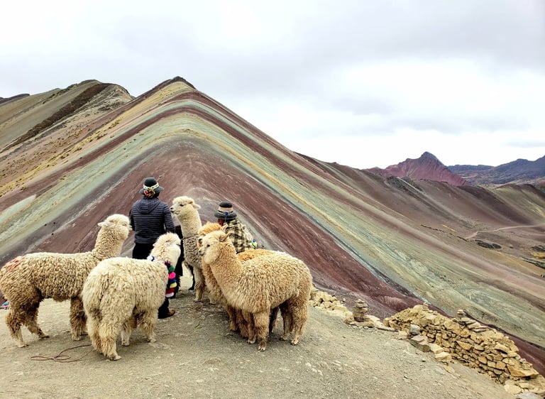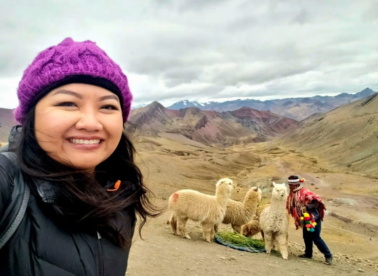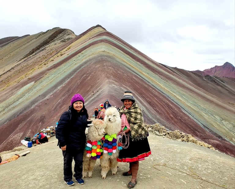 The views were breathtaking, not just at Rainbow Mountain, but along the entire hike. It was truly a once-in-a-lifetime experience, and we both felt grateful to have made it. We lingered at the summit for a while, soaking in the sweeping vistas of colorful mountains and adorable alpacas, letting the moment sink in.