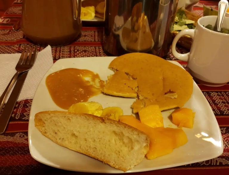 At 2:00 a.m., our alarms jolted us awake. Groggy but determined, we got up and readied ourselves for the long day ahead. By 3 a.m., we were picked up, winding our way through pitch-black roads that jostled us with every bump, the darkness stretching endlessly outside. Around 4 a.m., we finally pulled over at a small roadside restaurant for breakfast. Nothing about the meal was remarkable, but the steaming coca tea more than made up for it, an energizing tradition we drank generously to brace ourselves for the high-altitude journey ahead.