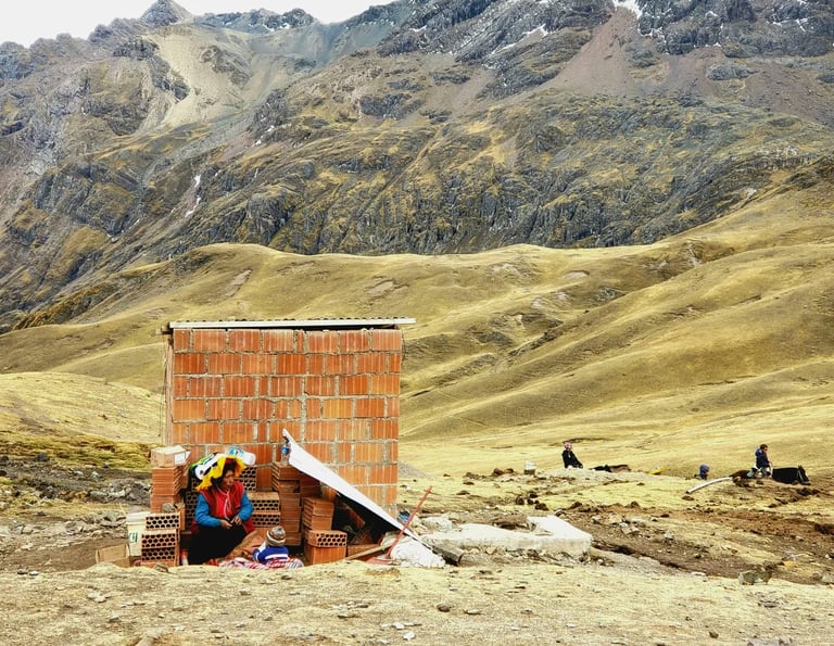 Right at the trailhead stood a small row of toilets, maybe three or four stalls. We decided it was a good idea to use them before the hike. A few soles exchanged hands with a woman in vibrant traditional dress, who sat at the entrance collecting the fees. Along with access to the stall, we were handed a few sheets of toilet paper and a tiny, thin slip of paper that looked more like a receipt than anything else.